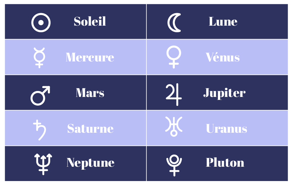 L’étape suivante pour prolonger votre découverte de l’astrologie est de comprendre à quoi correspondent les planètes dans votre thème astral : je découvre les planètes en astrologie.